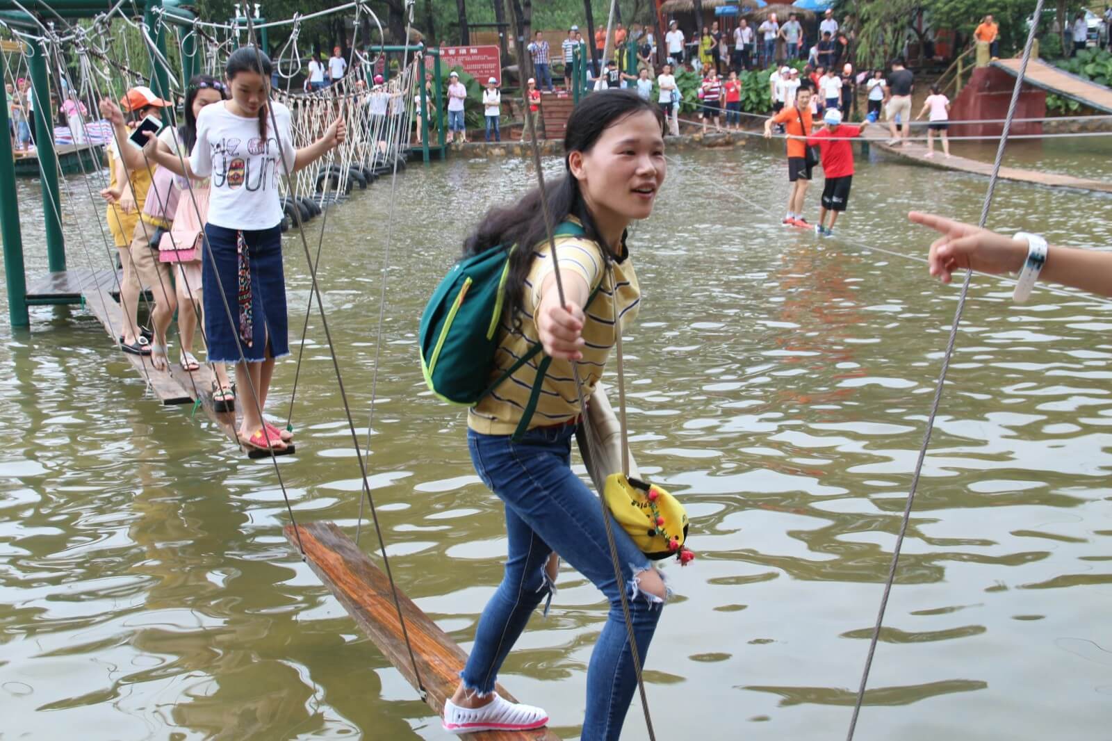 大約經(jīng)過半小時的登山,便抵達了驚魂玻璃橋及與之相依的飛龍滑道,驚魂玻璃橋的空中廊橋全長接近200米,懸空離地180米左右,對于有恐高癥的人來說,不畏是一處挑戰(zhàn)自我的好地方。不過,再怎么害怕,再通過全長達500多米的飛龍滑道到達山下之后,也就不存在了,長長的滑道可是讓我們重新體驗了一把童年的滑梯享受。另外,景區(qū)還設有水上樂園、空中漂流及水上拓展項目。